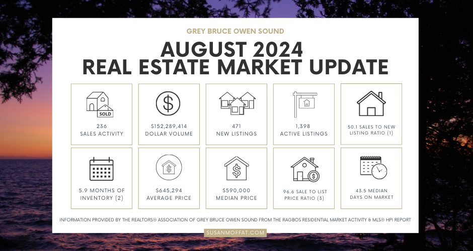 The number of homes sold through the MLS® System of the REALTORS® Association of Grey Bruce Owen Sound totaled 236 units in August 2024. This was an increase of 7.8% from August 2023.