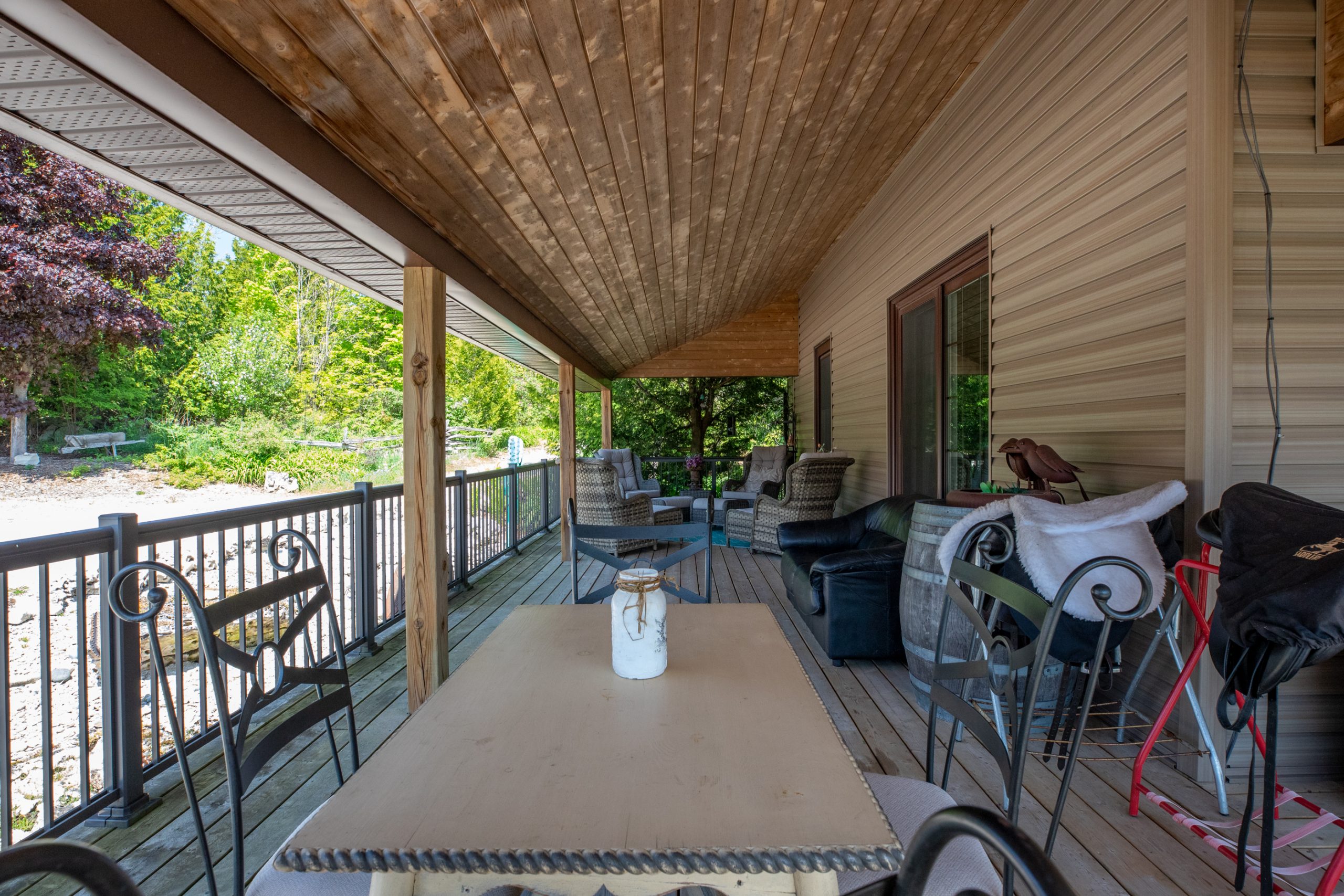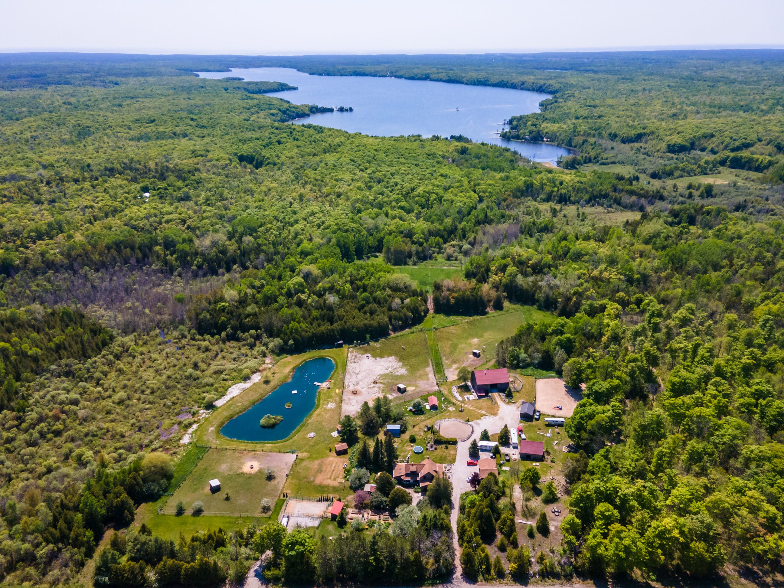 | Situated in the breathtaking beauty of Bruce County, this eclectic property offers an extraordinary opportunity for nature lovers and outdoor enthusiasts. Set on a sprawling 86 acres, this waterfront hobby farm has 942 ft of frontage on the scenic Miller Lake. The stunning and charismatic home provides an idyllic retreat in a picturesque setting. With a charming covered wraparound porch and elegant French doors, this 4 bedroom, 3 bathroom home exudes timeless charm and classic appeal. Inside, hardwood floors grace every room, creating a warm and inviting atmosphere. Dedicated office space, ideal for those who work remotely or require a quiet space for productivity; spa room complete with a soothing hot tub. Plus a mudroom/sitting room with a cozy wood stove and 3pc. bathroom close by. Cold cellar provides the perfect storage solution and detached three-bay garage offers ample space for vehicles and additional storage needs. 86 acres of land with extensive trails winding throughout the property and home for an abundance of wildlife. Well-maintained bank barn for your horses, goats etc., with stalls and hydro, along with four run-in shelters, paddocks, sheds, and bunkies for your guests. Large swimming pond with a windmill, dock, and raft are a treat in the warm weather. Beautifully landscaped grounds are adorned with a greenhouse and raised garden beds, perfect for cultivating your own garden oasis! Surrounded by the natural splendor of Bruce County, with its inland lakes, Georgian Bay, Lake Huron, and provincial parks, this property offers endless opportunities for exploration and outdoor pursuits. Truly a must-see, this unique property will captivate your heart and inspire you to spend countless hours immersed in its beauty. Don't miss out on this exceptional opportunity – schedule your showing today and embark on a journey to discover the boundless wonders that await you! See link to additional images in listing! | |